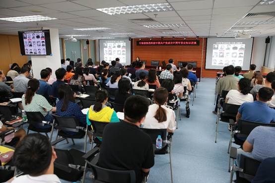董洁副教授运用文字、图片和生动形象的案例,全 面讲述党的历史, 从新民主主义革命时期、社会主义革命和建设时期、改革开放新时期等 3个阶段,系统回顾了中国共产党的奋斗历程,以及党在长期奋斗中形成的思路路线、光荣传统和优良作风。董教授的讲课深入浅出,条理清晰,生动幽默,全体职工认真聆听,不时做笔记。